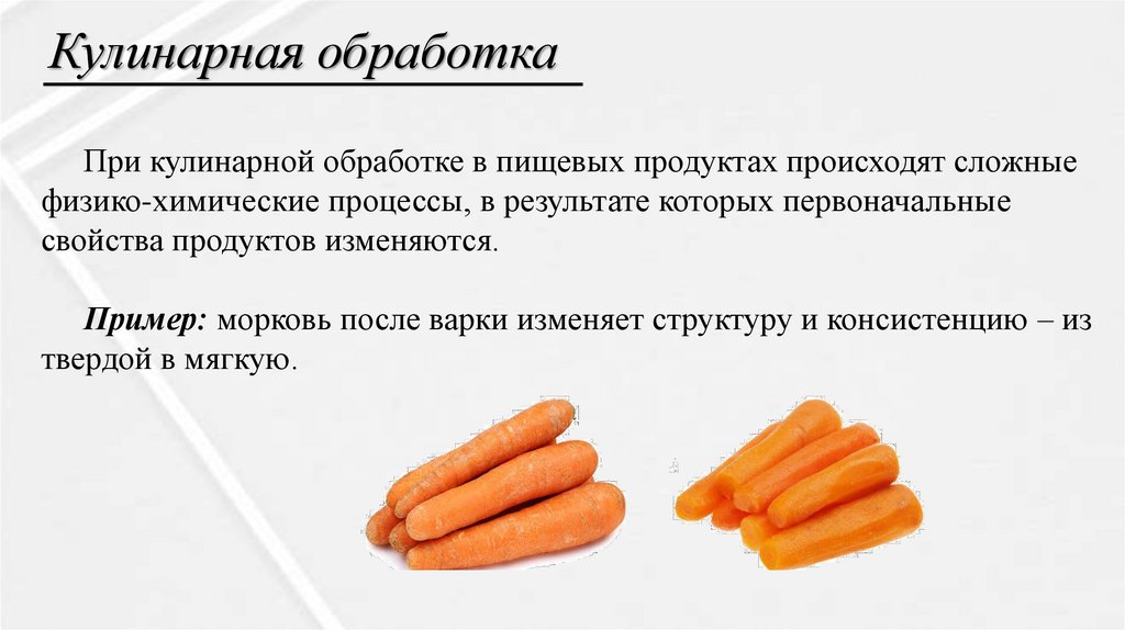 Пример: морковь после варки изменяет структуру и консистенцию – из