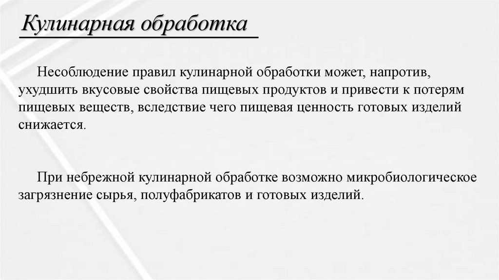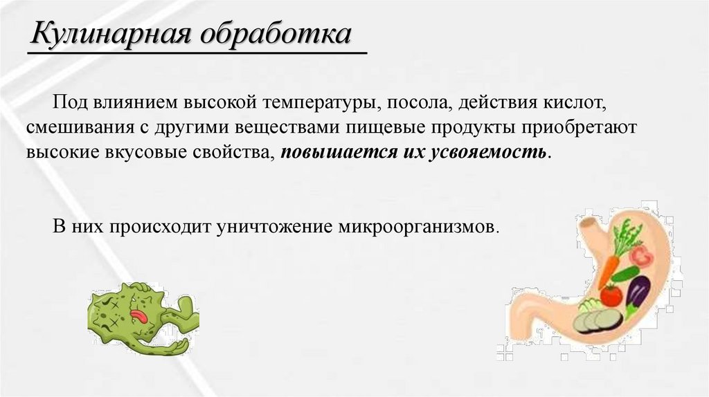 Кулинарная обработкаПри кулинарной обработке в пищевых продуктах происходят сложные
