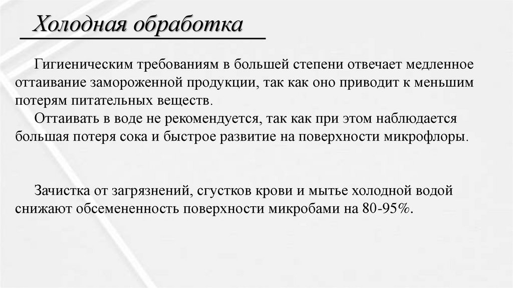 Холодная обработкаГигиеническим требованиям в большей степени отвечает медленное