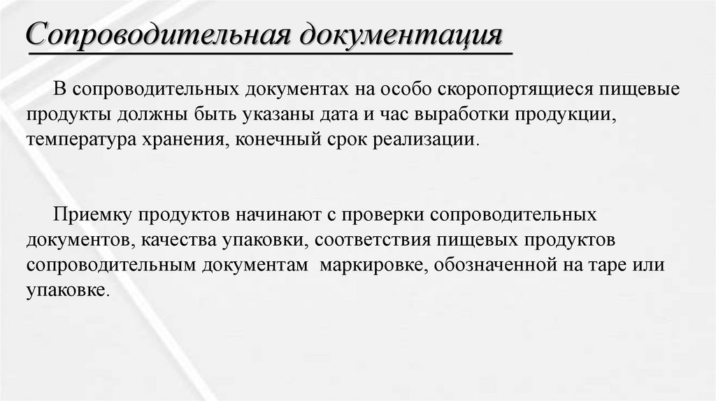 Сопроводительная документацияВ сопроводительных документах на особо скоропортящиеся пищевые