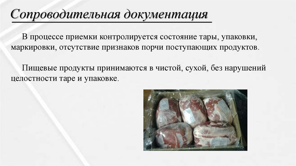 Пищевые продукты принимаются в чистой, сухой, без нарушений