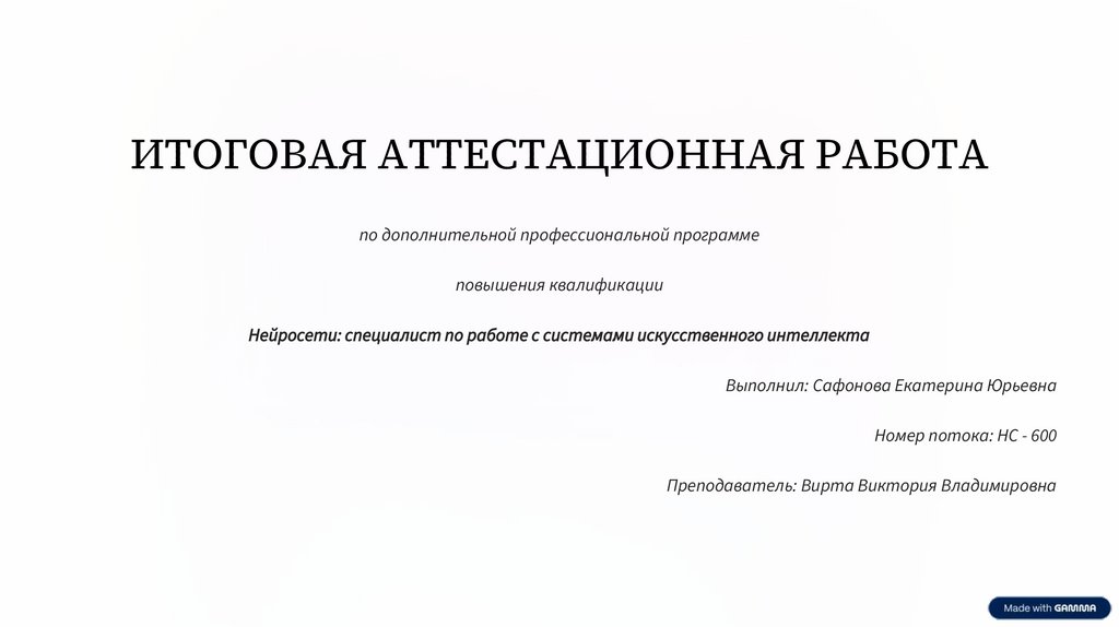 ИТОГОВАЯ АТТЕСТАЦИОННАЯ РАБОТАпо дополнительной профессиональной программе