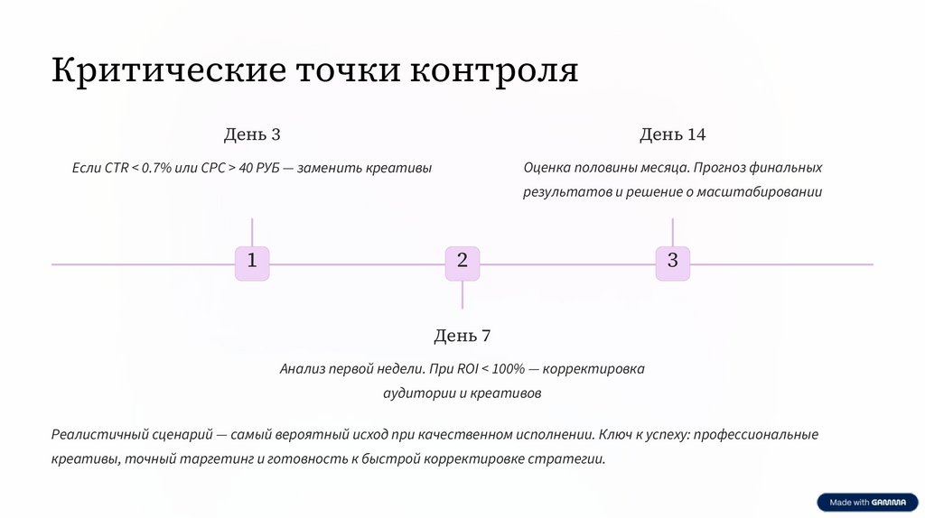 Если CTR < 0.7% или CPC > 40 РУБ — заменить креативы