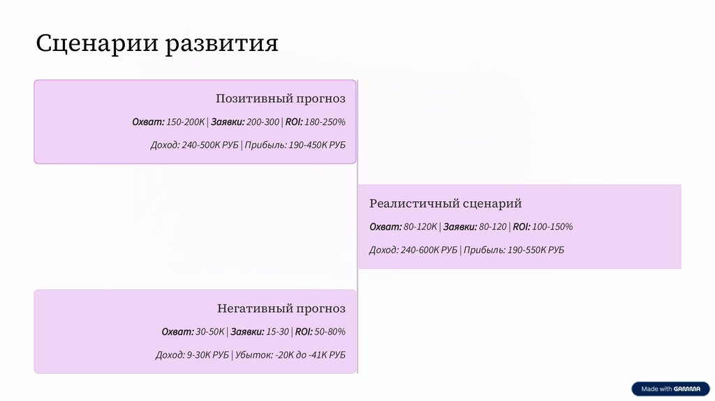 Реалистичный сценарий — самый вероятный исход при качественном исполнении. Ключ к успеху: профессиональные