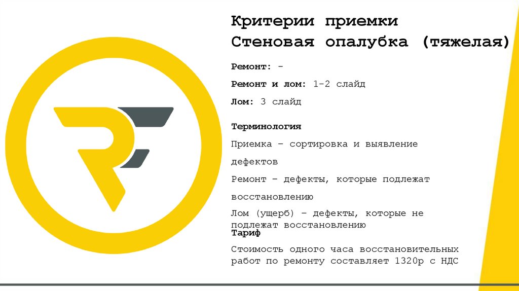 Критерии приемки оборудованияна складе Rentalform