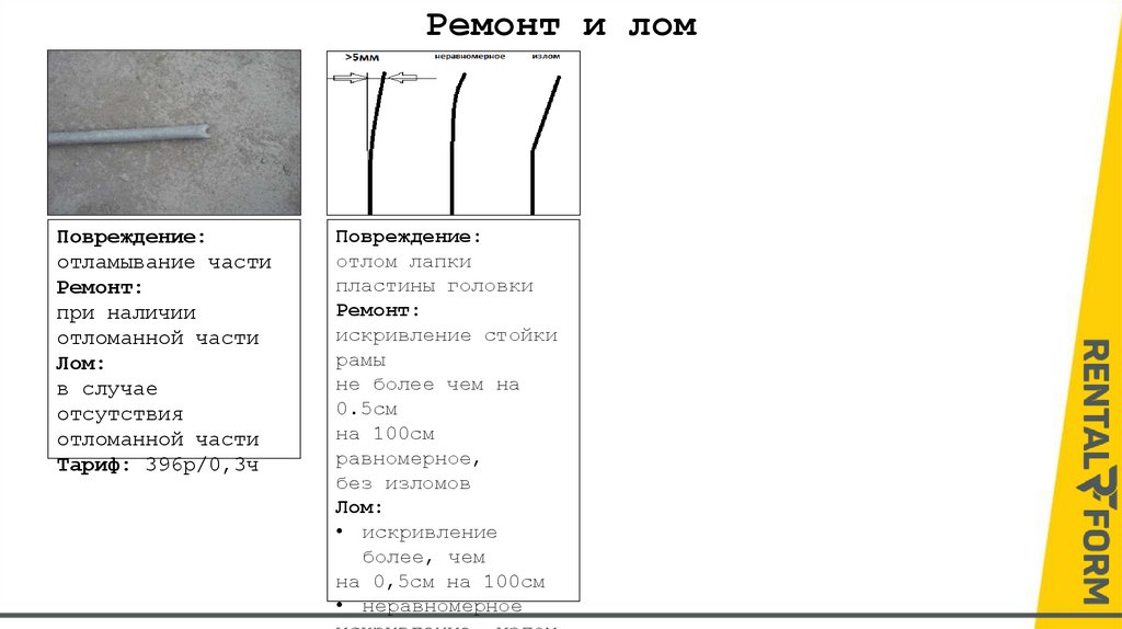 Ремонт и ломПовреждение: