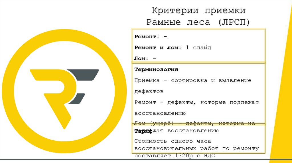 Критерии приемкиРамные леса (ЛРСП)