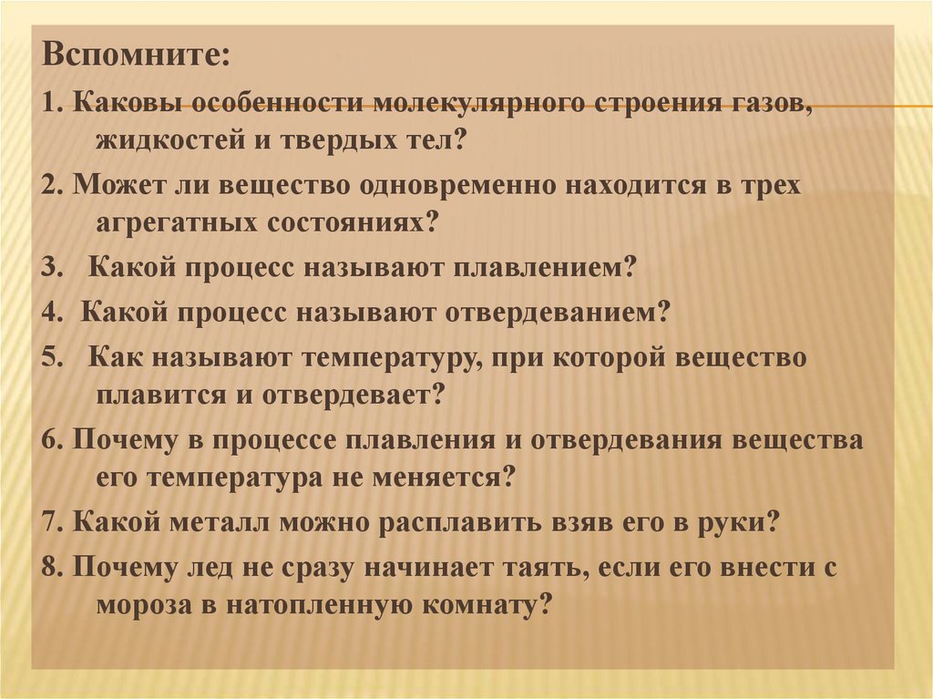 Вспомните:1. Каковы особенности молекулярного строения газов,