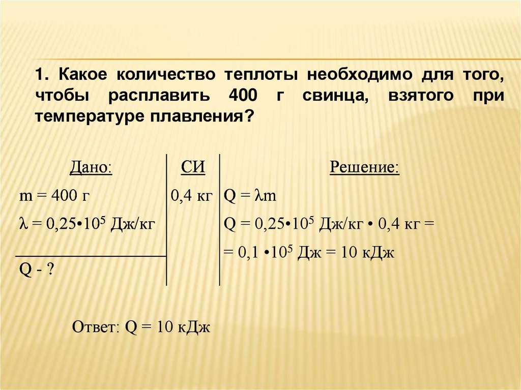 1. Какое количество теплоты необходимо для того,чтобы расплавить 400 г свинца, взятого при