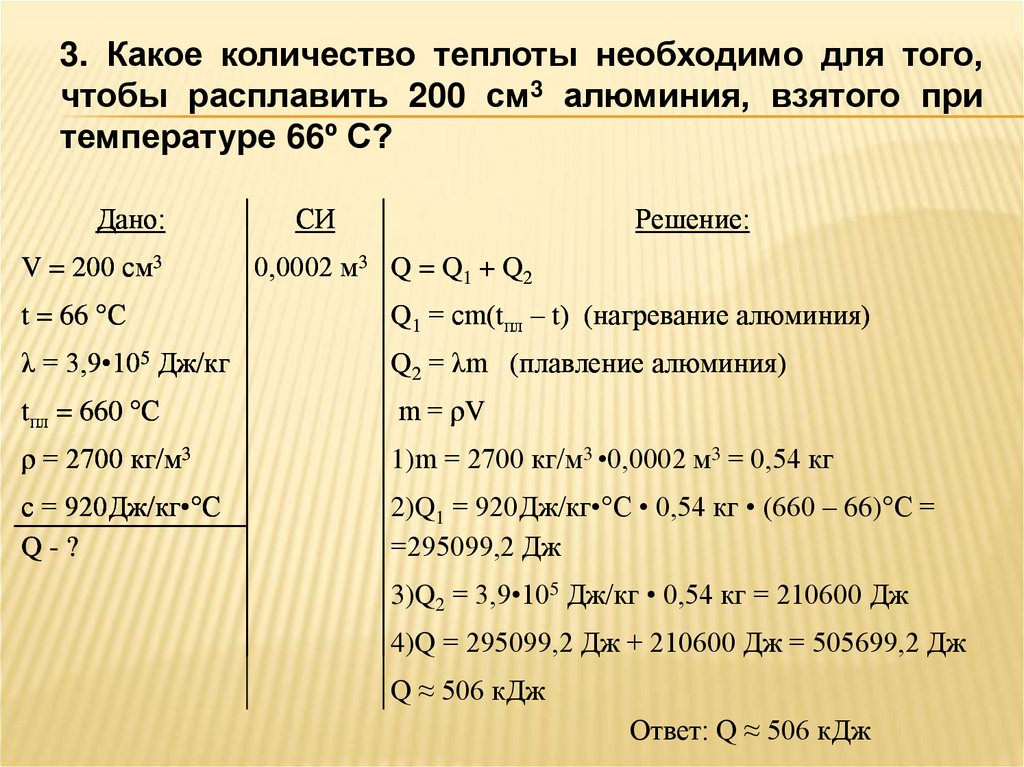 3. Какое количество теплоты необходимо для того,чтобы расплавить 200 см3 алюминия, взятого при