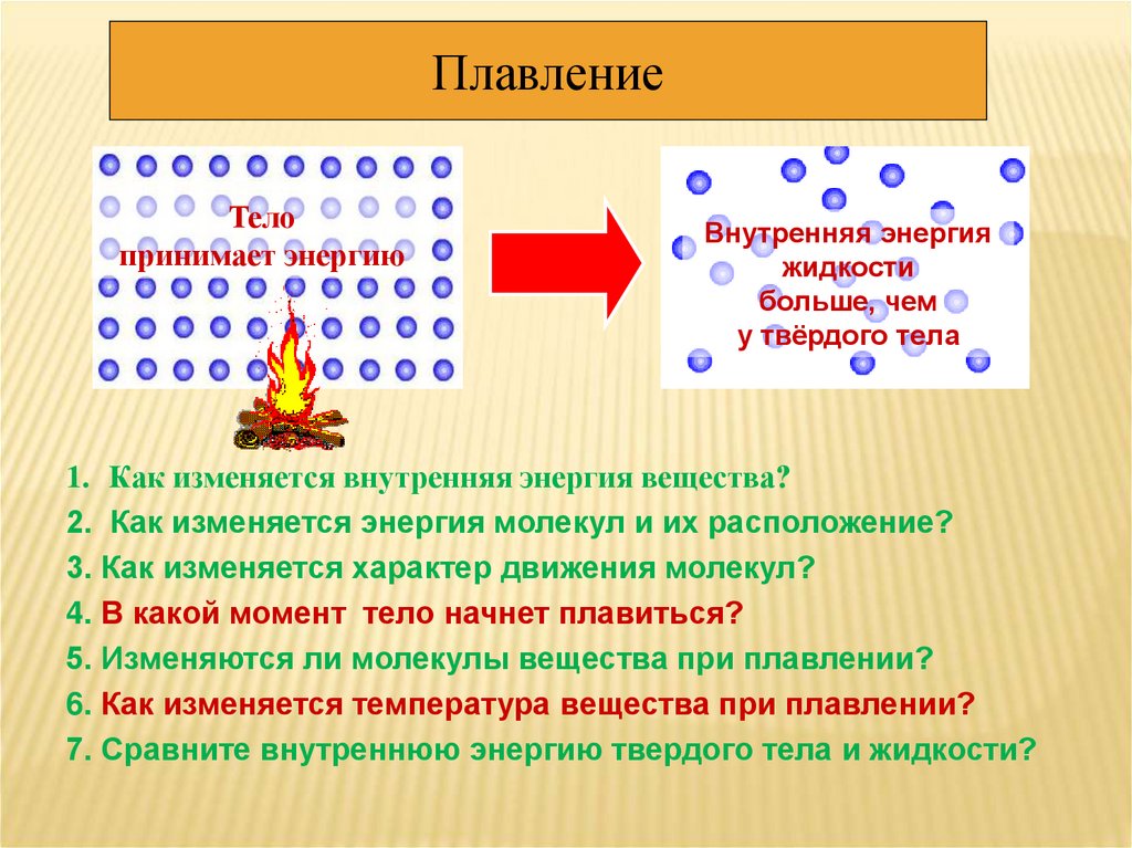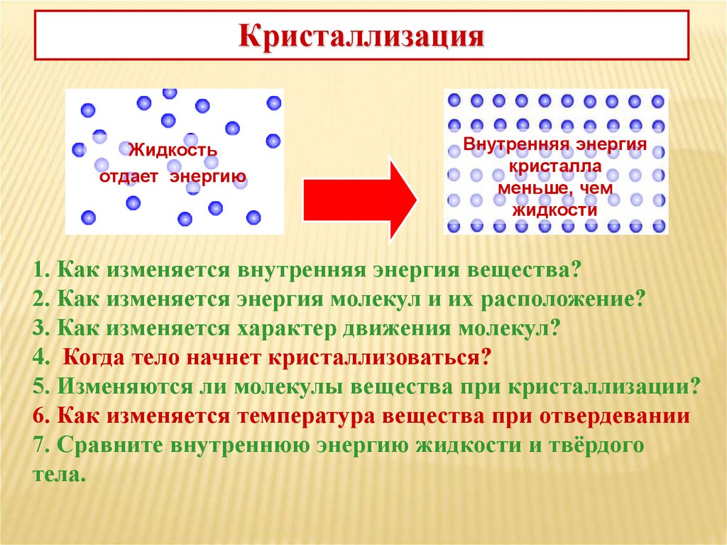 7. Сравните внутреннюю энергию твердого тела и жидкости?