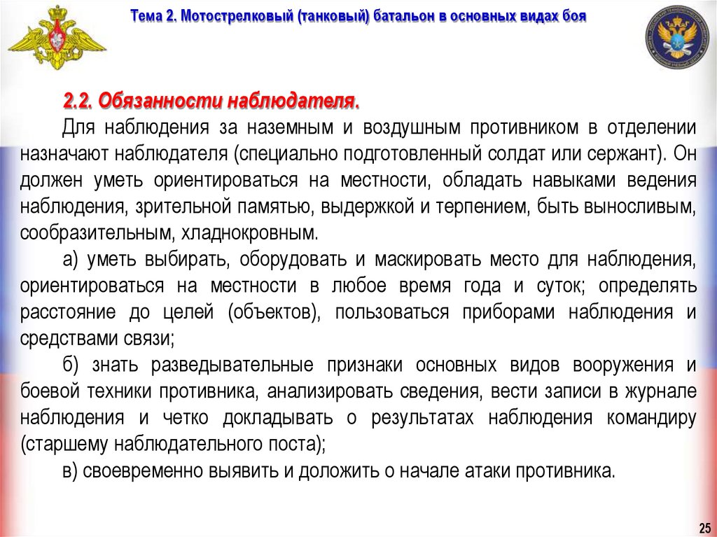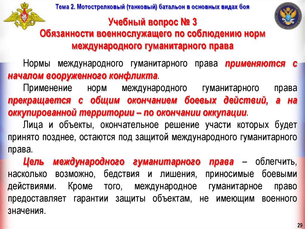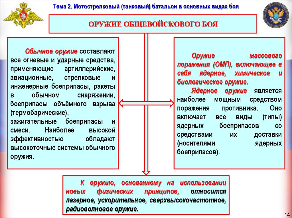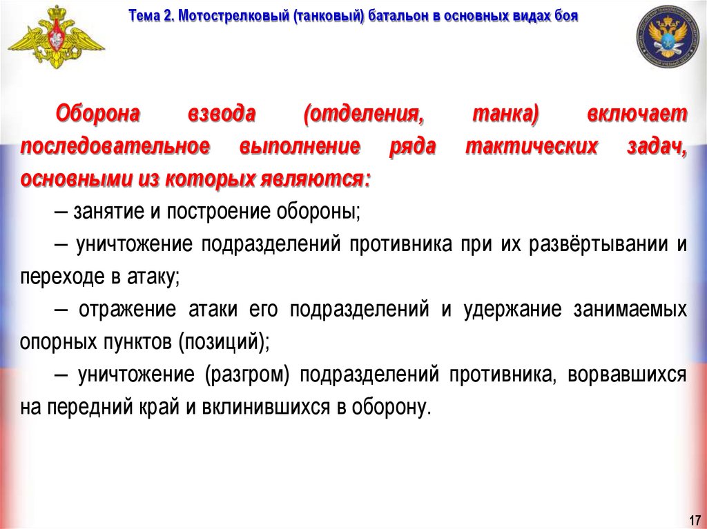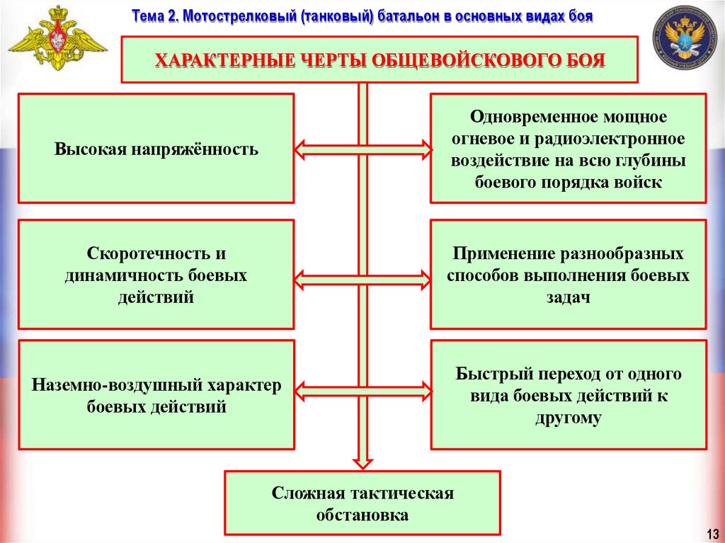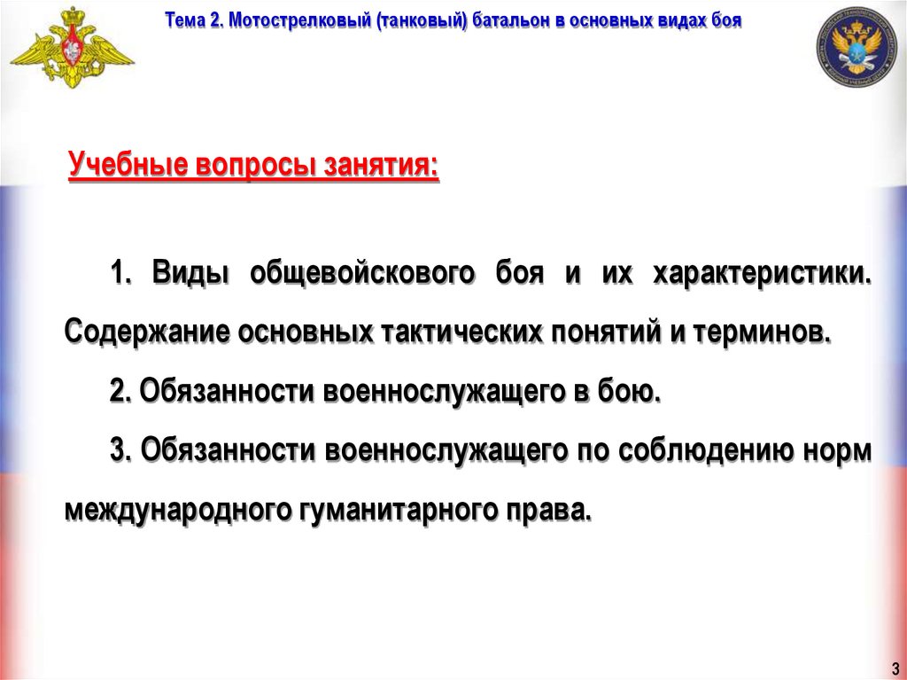 Тема 2. Мотострелковый (танковый) батальон в основных видах бояУчебные вопросы занятия: