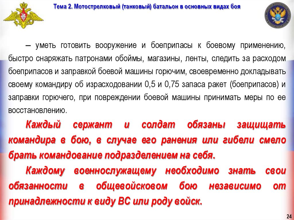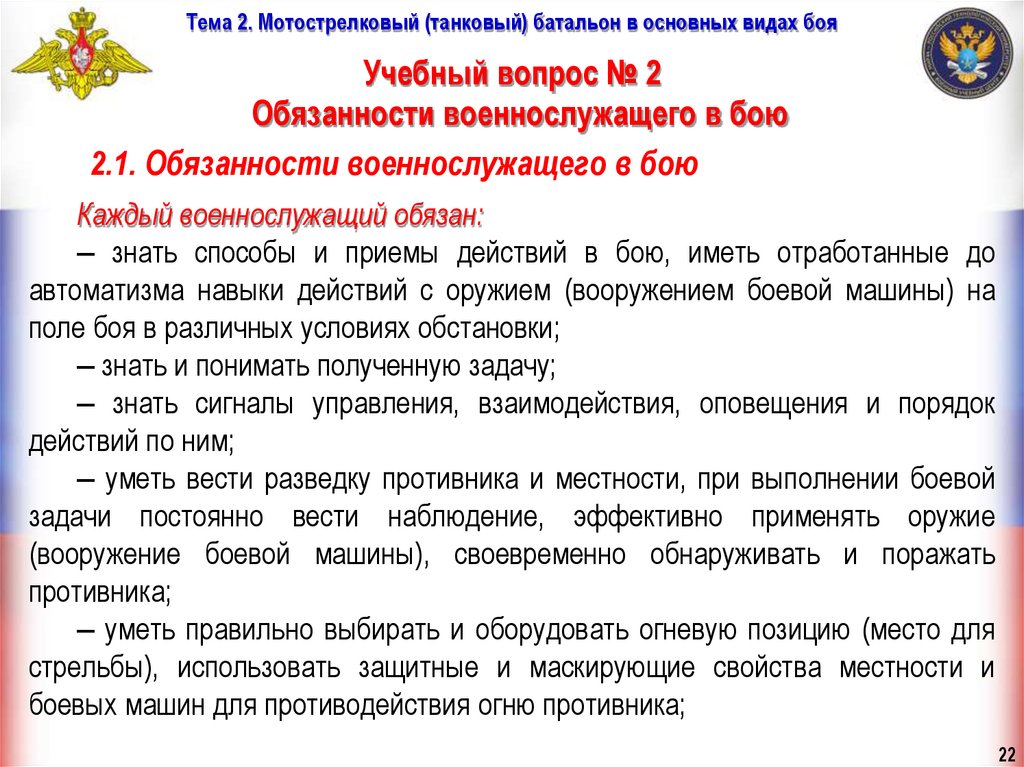 2. Обязанности военнослужащего в бою.