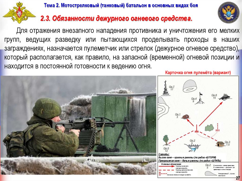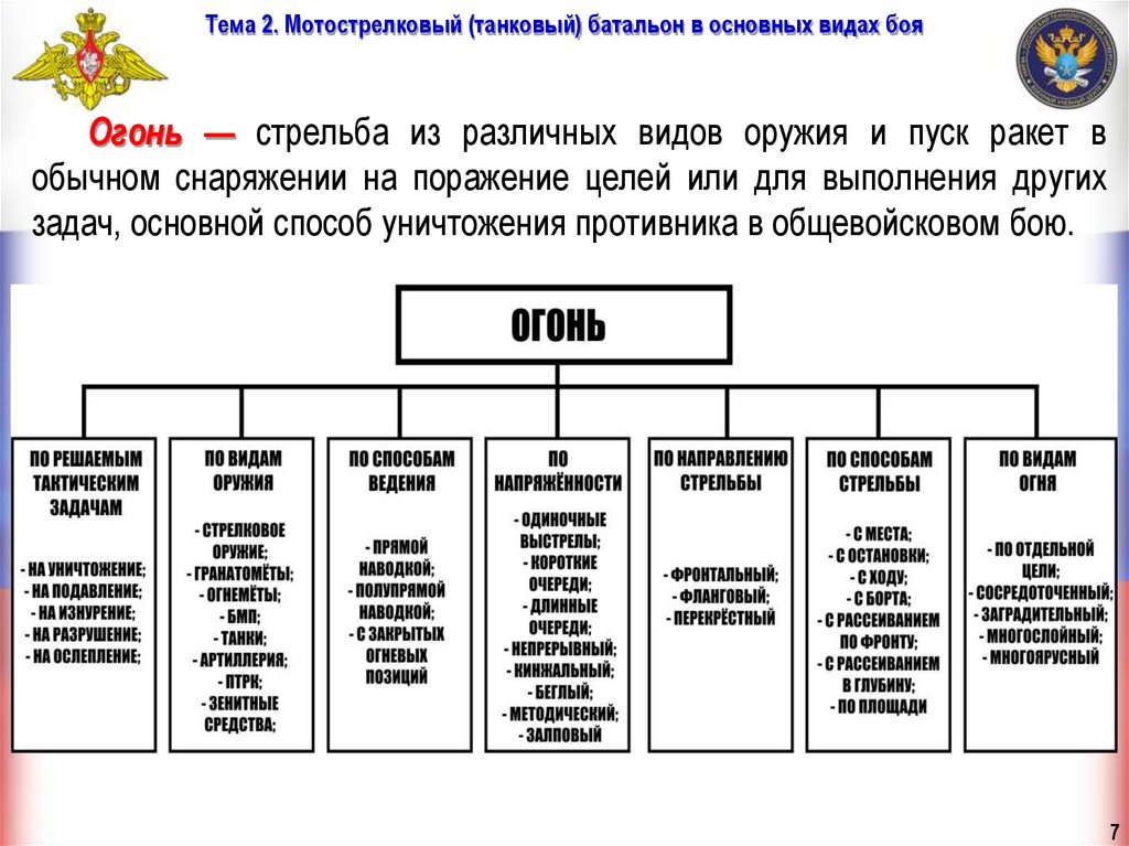 Тема 2. Мотострелковый (танковый) батальон в основных видах бояОгонь — стрельба из различных видов оружия и пуск ракет в