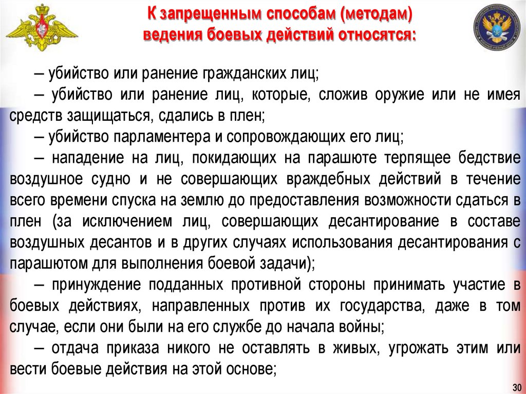 противника. Относись к нему гуманно. Не подвергай его пыткам.
