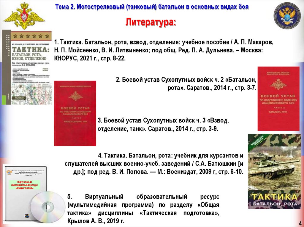 4. Тактика. Батальон, рота: учебник для курсантов и слушателей