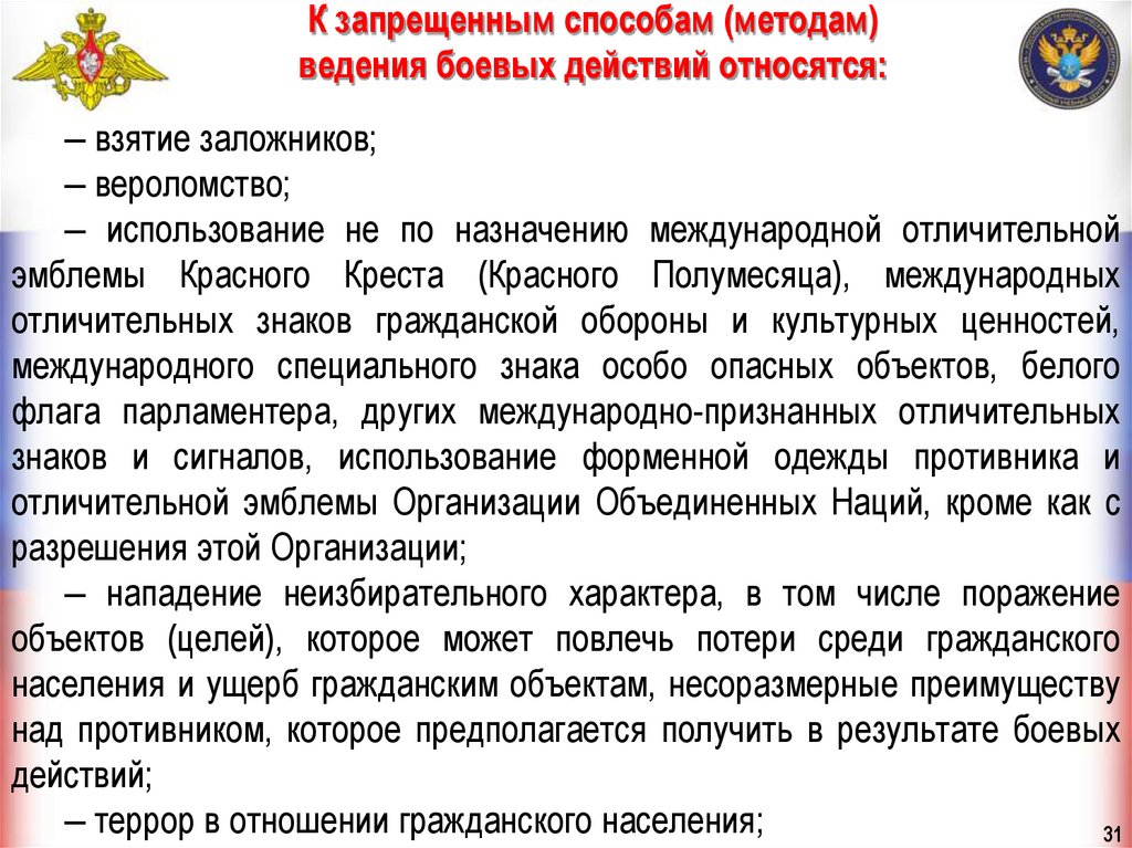 эмблемами и знаками, если они не совершают враждебных действий.