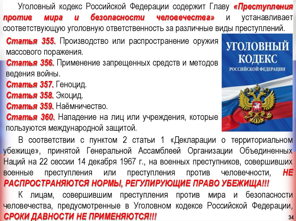 человечества, предусмотренные в Уголовном кодексе Российской Федерации,