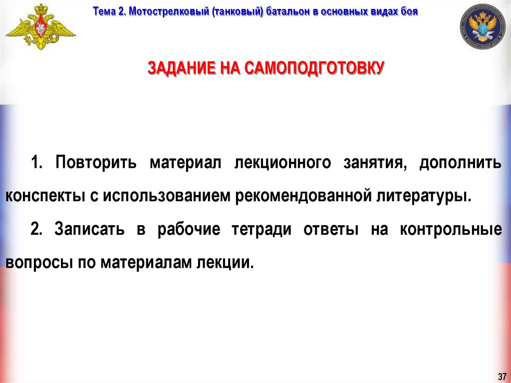 Тема 2. Мотострелковый (танковый) батальон в основных видах бояЗАДАНИЕ НА САМОПОДГОТОВКУ