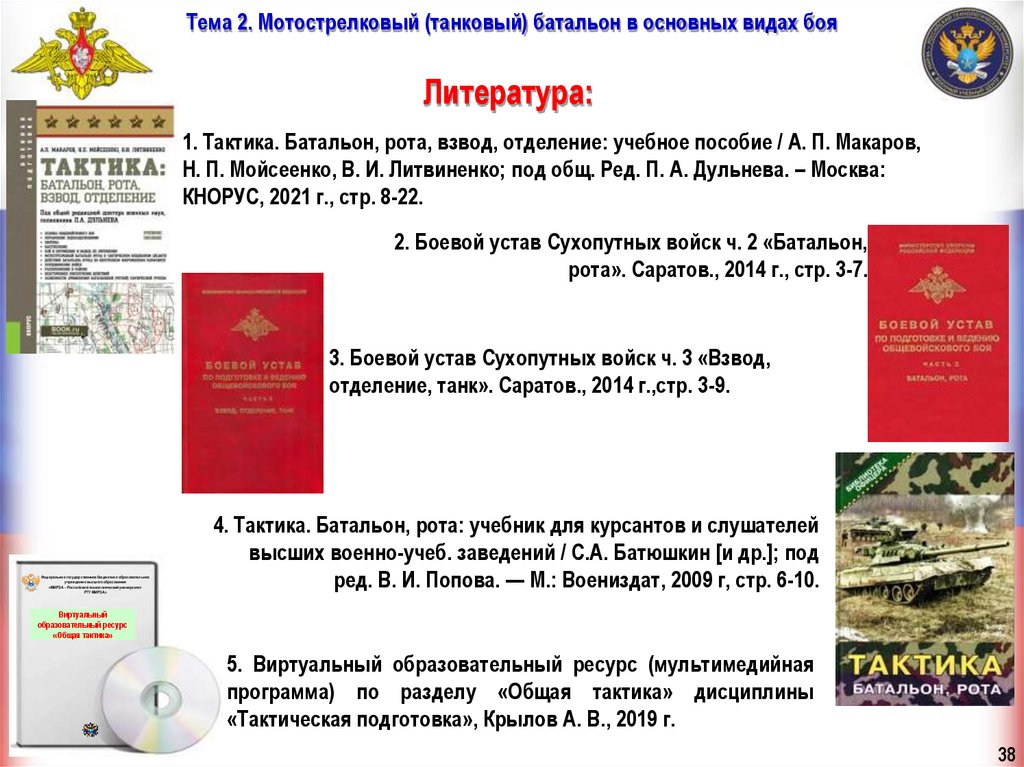 Тема 2. Мотострелковый (танковый) батальон в основных видах бояЛитература: