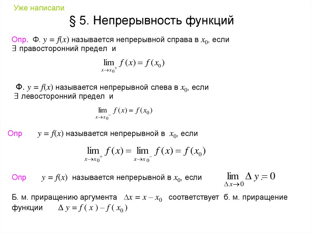 Ф. y = f(x) называется непрерывной слева в x0, если