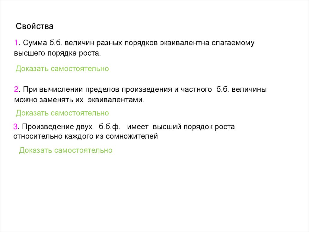 1. Сумма б.б. величин разных порядков эквивалентна слагаемому