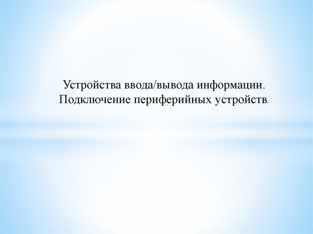 Устройства ввода/вывода информации.Подключение периферийных устройств.
