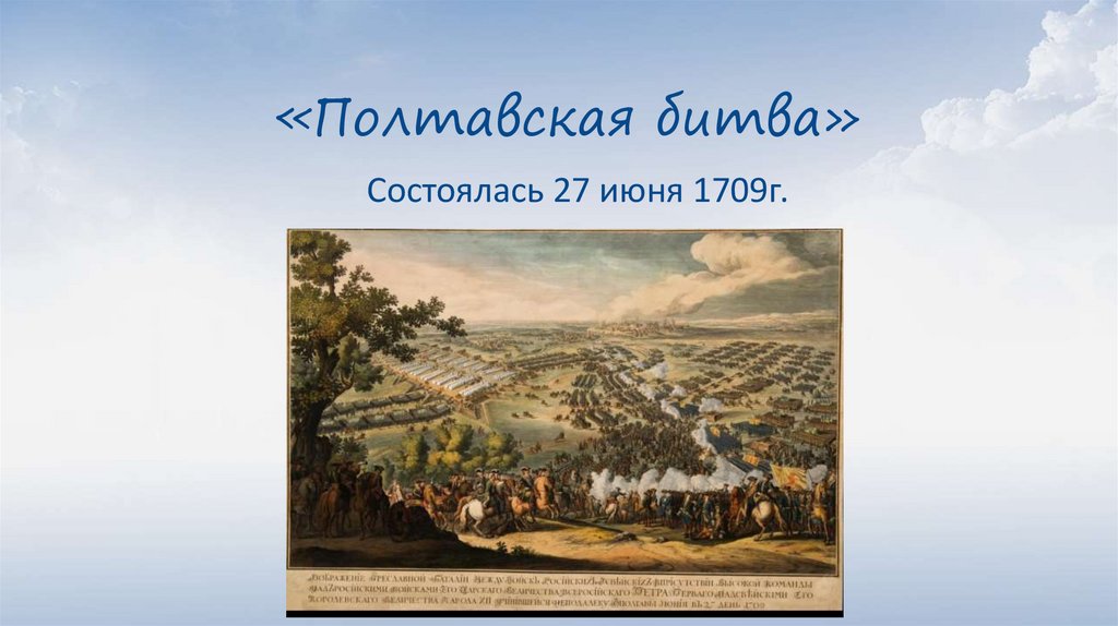 «Полтавская битва»Состоялась 27 июня 1709г.