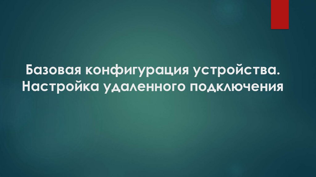 Базовая конфигурация устройства.Настройка удаленного подключения
