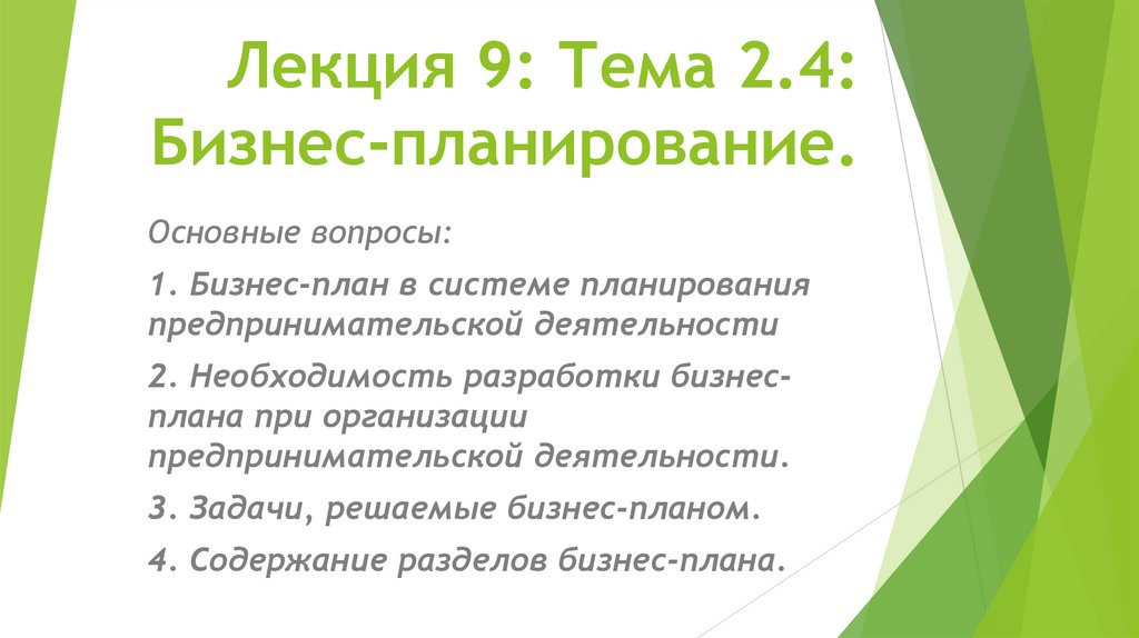 1. Лекция 9: Тема 2.4: Бизнес-планирование.