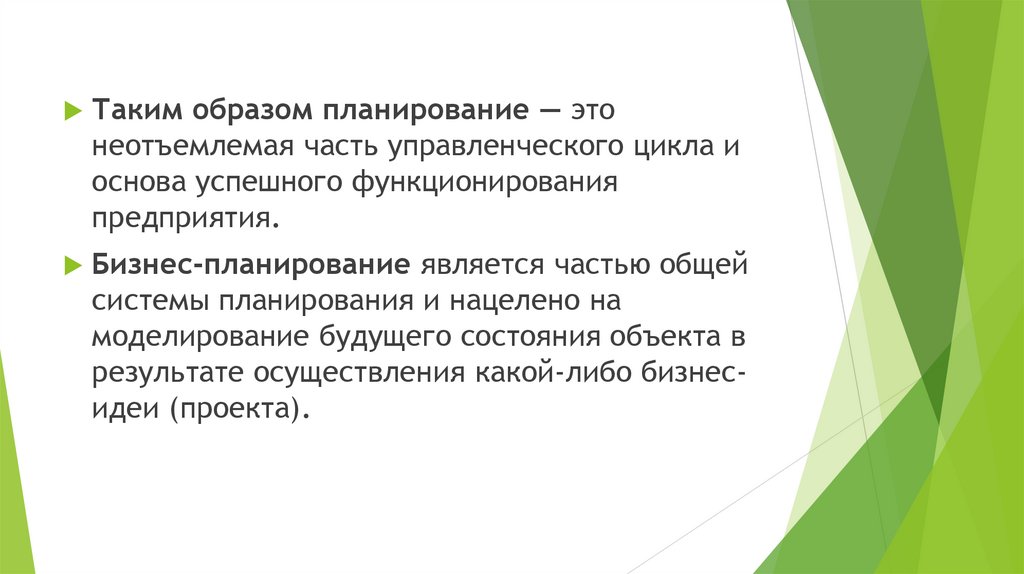 Таким образом планирование — этонеотъемлемая часть управленческого цикла и