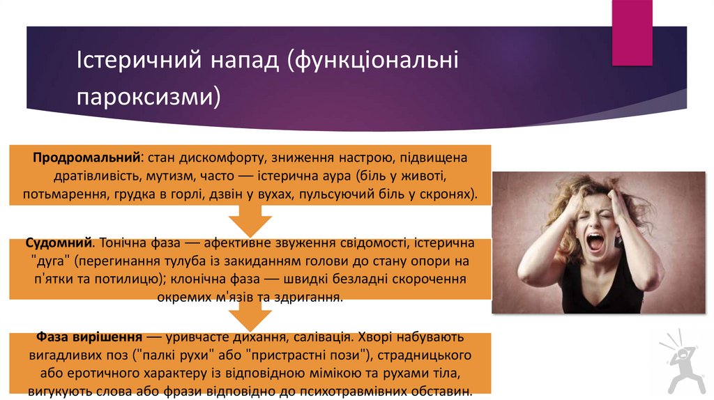 • яскраво виражене пароксизмальне спастичне скорочення окремих м’язових груп