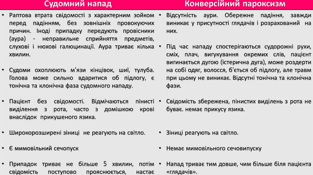 З усіх категорій невідкладних станів у психіатрії виділяють триосновні, пов'язані з наступними ознаками: