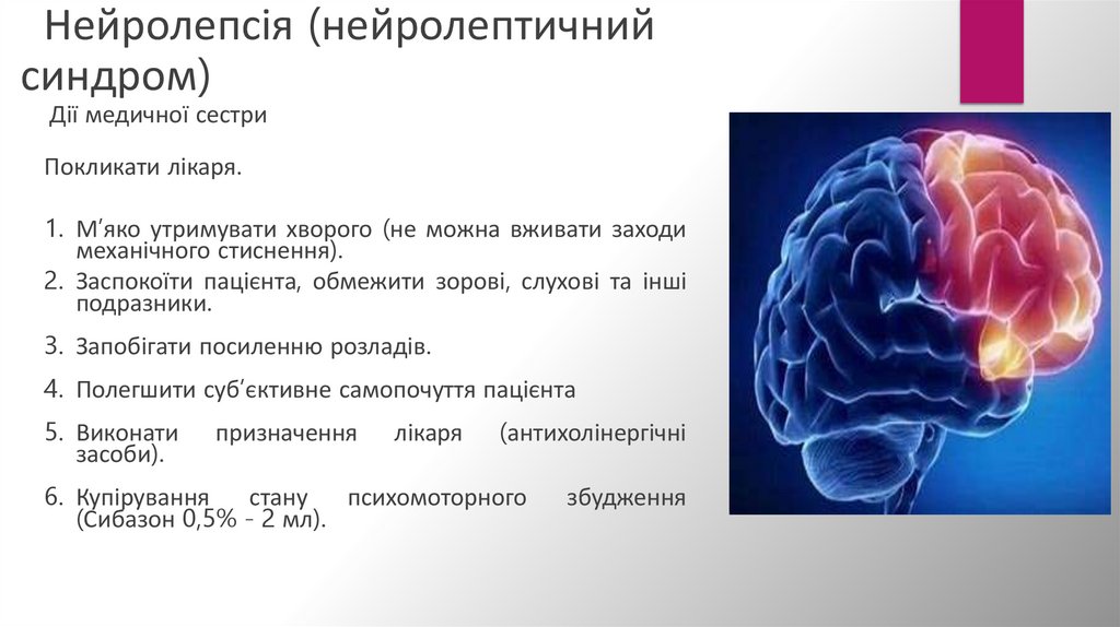 Нейролепсія (нейролептичний синдром)• Спостерігається як побічна дія внаслідок призначення