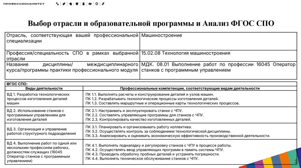 Выбор отрасли и образовательной программы и Анализ ФГОС СПООтрасль, соответствующая вашей профессиональной Машиностроение
