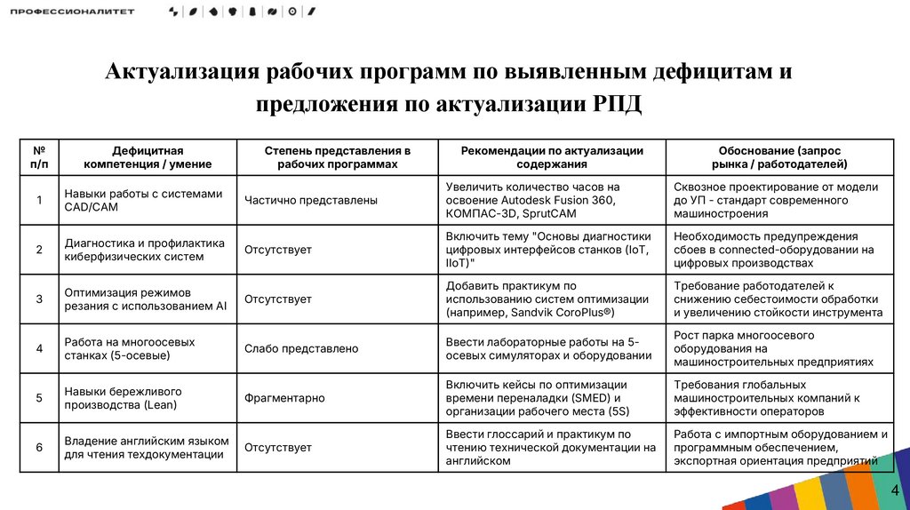 Актуализация рабочих программ по выявленным дефицитам ипредложения по актуализации РПД
