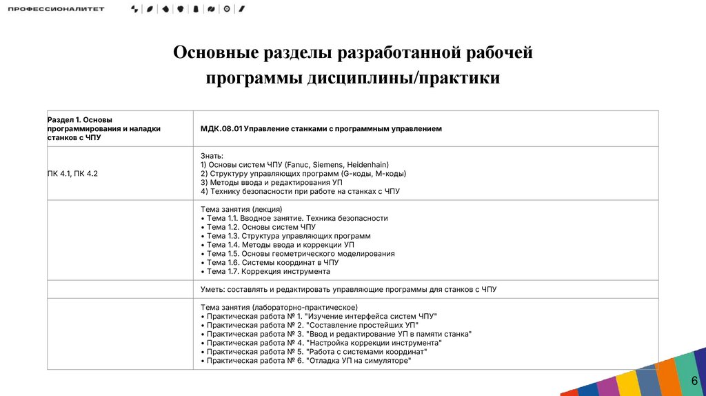 курса/программы практики профессионального модуля станков с программным управлением
