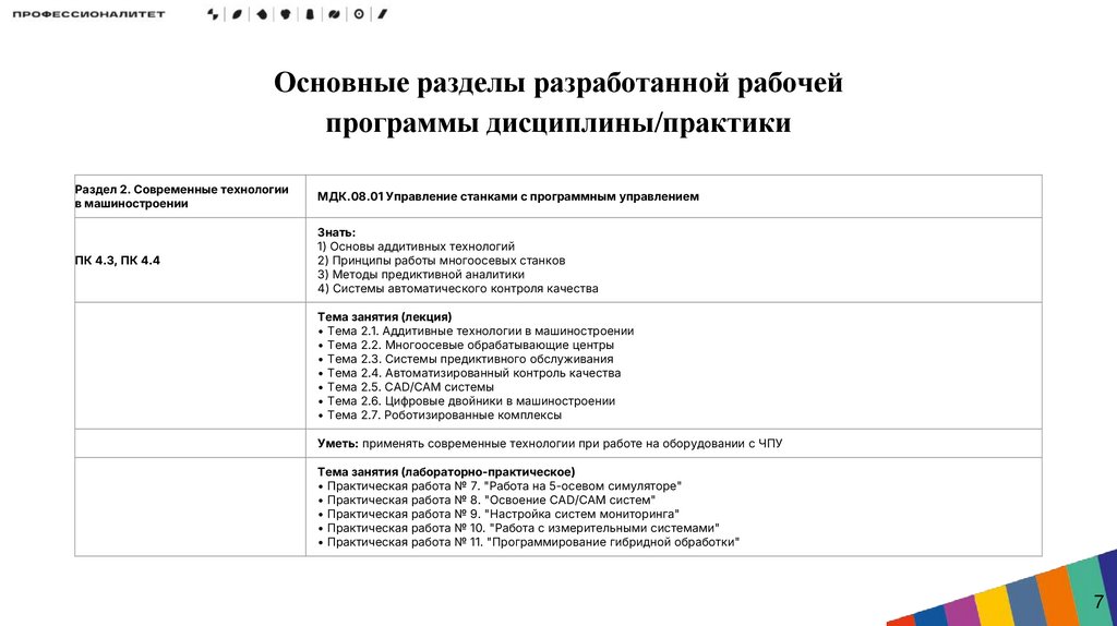 • Структурирование ДПК: Определение знаний, умений и навыков для каждой дополнительной