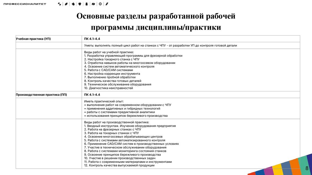 • Интеграция практической подготовки: Включение заданий, направленных на формирование