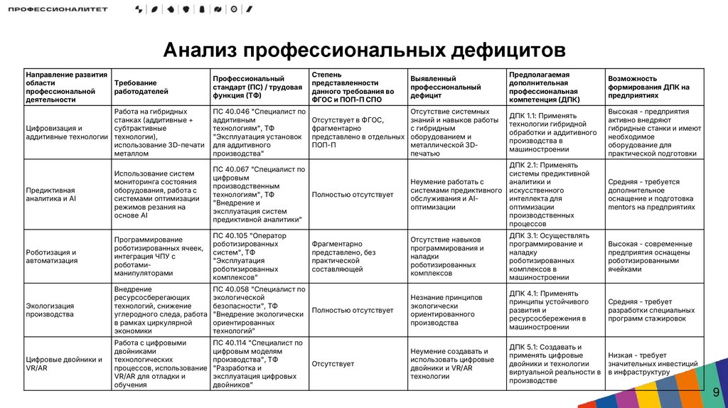 • Ранжирование дефицитов: Определение приоритетных направлений для включения в