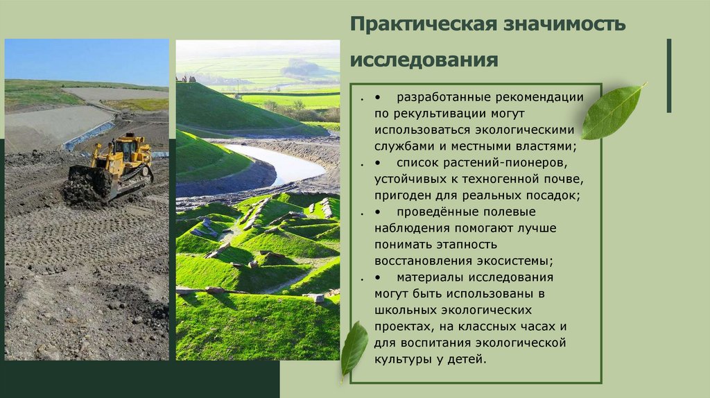 Гипотеза: Если при рекультивации
