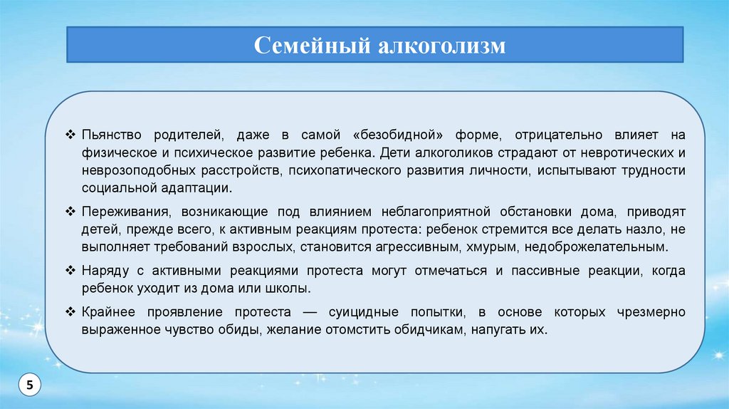 Семейный алкоголизмПьянство родителей, даже в самой «безобидной» форме, отрицательно влияет на
