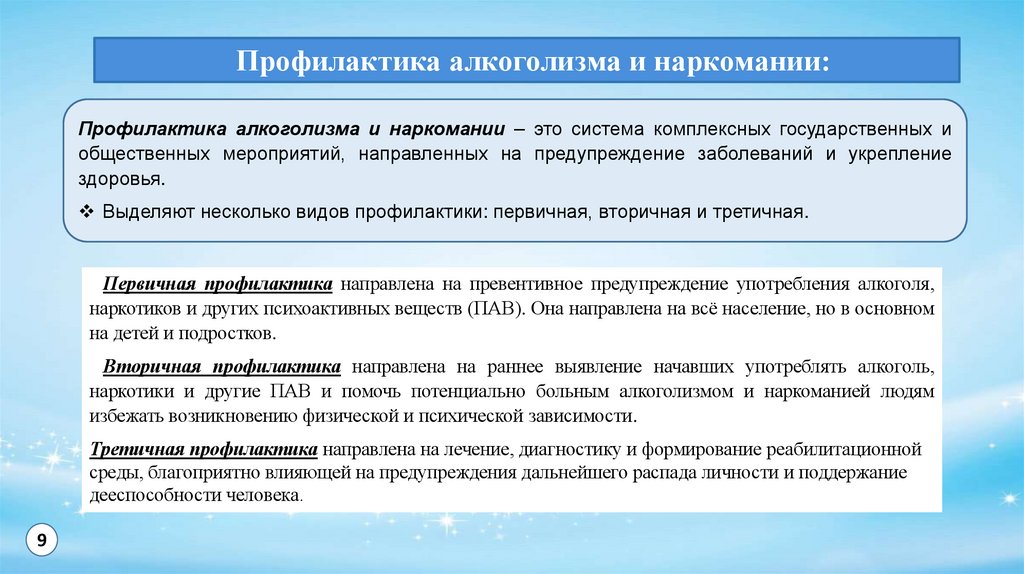 наркотиков и других психоактивных веществ (ПАВ). Она направлена на всё население, но в основном