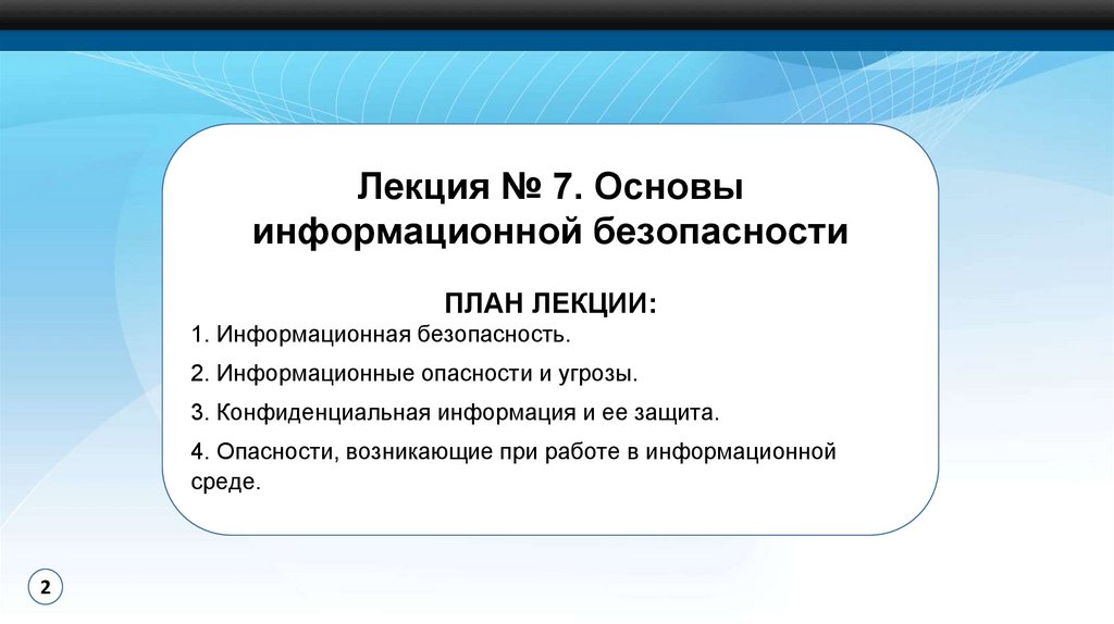 Лекция № 7. Основыинформационной безопасности