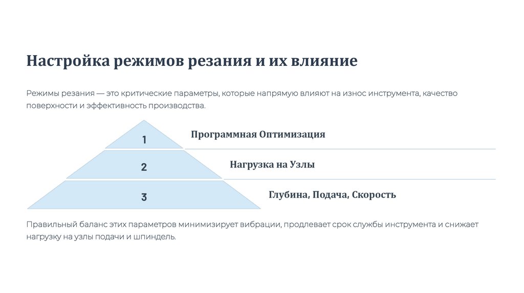 Настройка режимов резания и их влияниеРежимы резания — это критические параметры, которые напрямую влияют на износ инструмента, качество