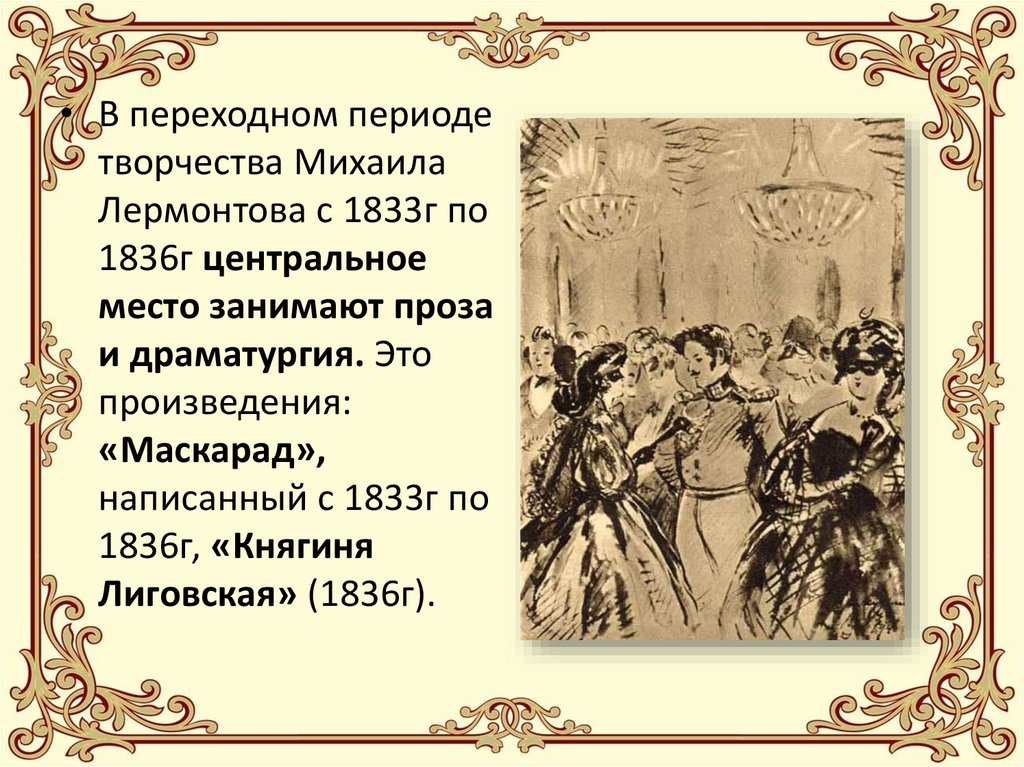• Творческая деятельность М.Ю. Лермонтовапротекала в годы жесточайшей