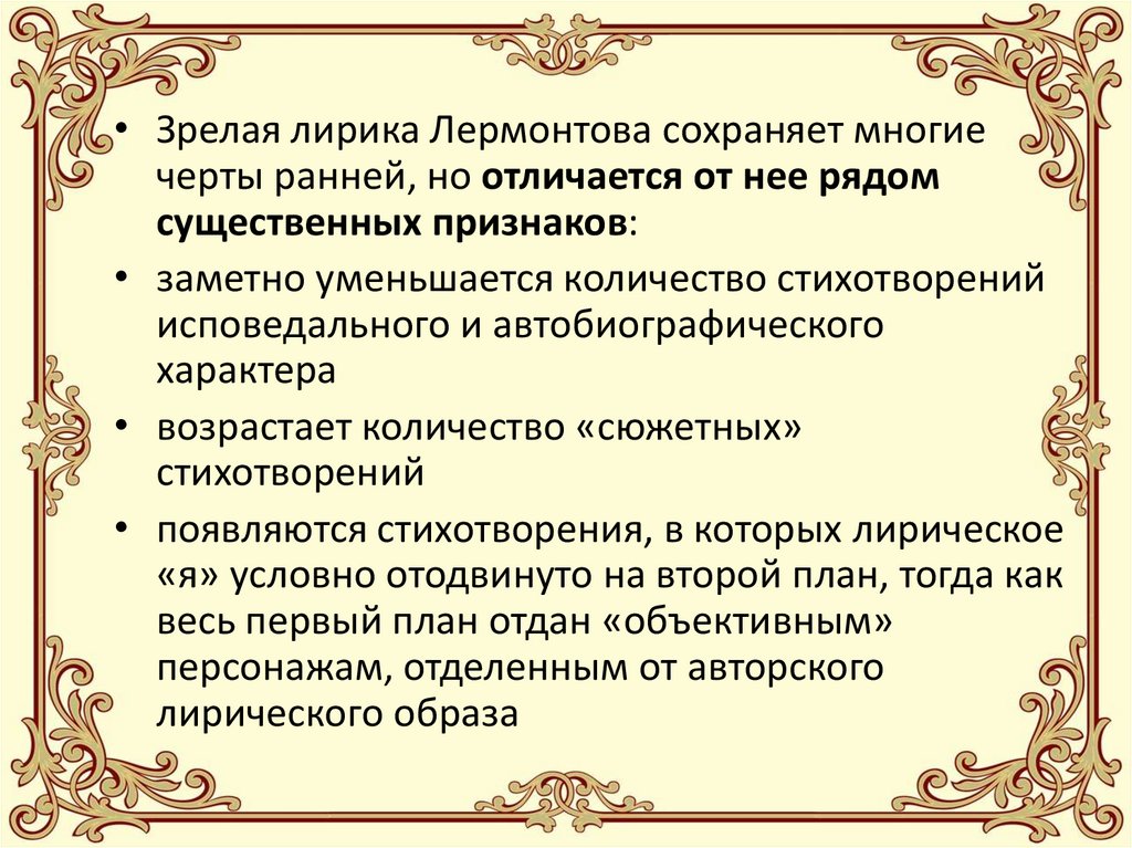 • В поэзии Лермонтова можно отметитьнекоторые особенности, выделяющие его