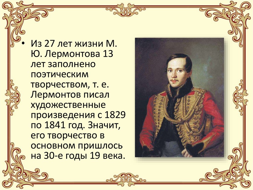 • Из 27 лет жизни М.Ю. Лермонтова 13