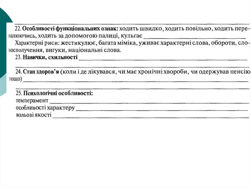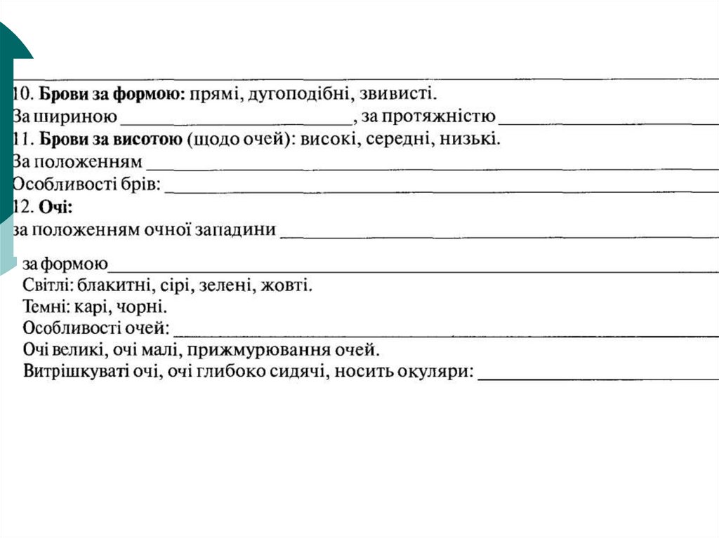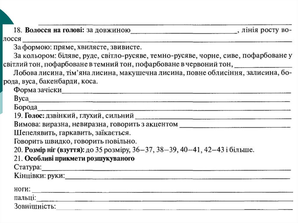 10. Система опису прикмет зовнішності людини (словесний портрет)