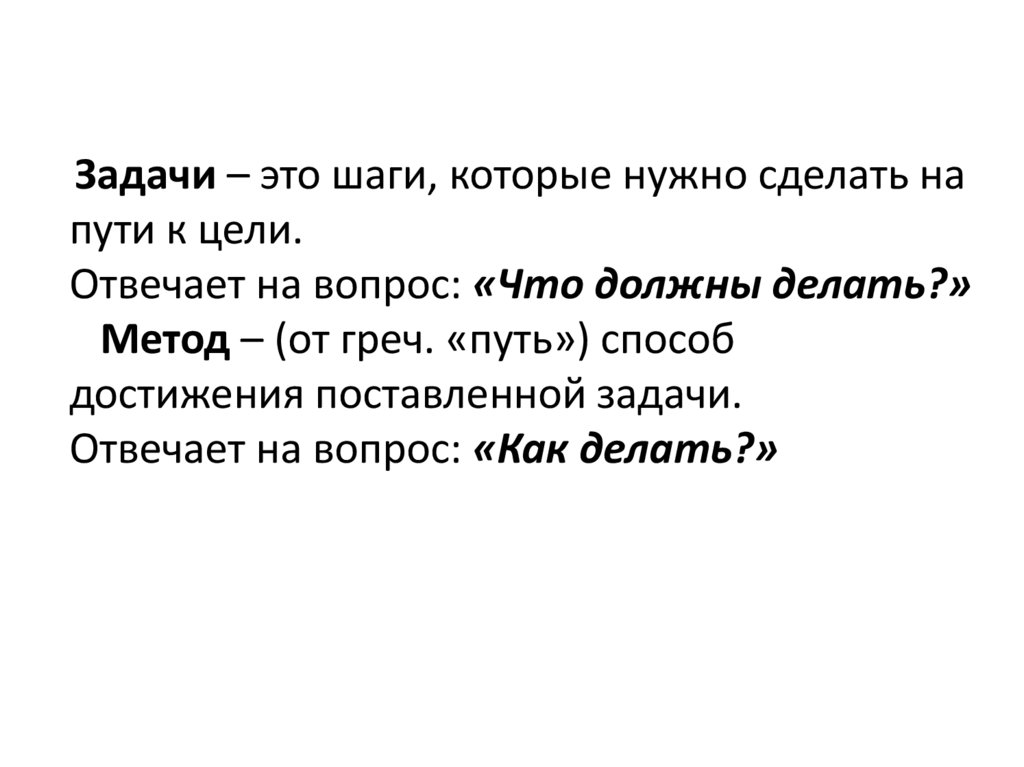 Задачи – это шаги, которые нужно сделать напути к цели.